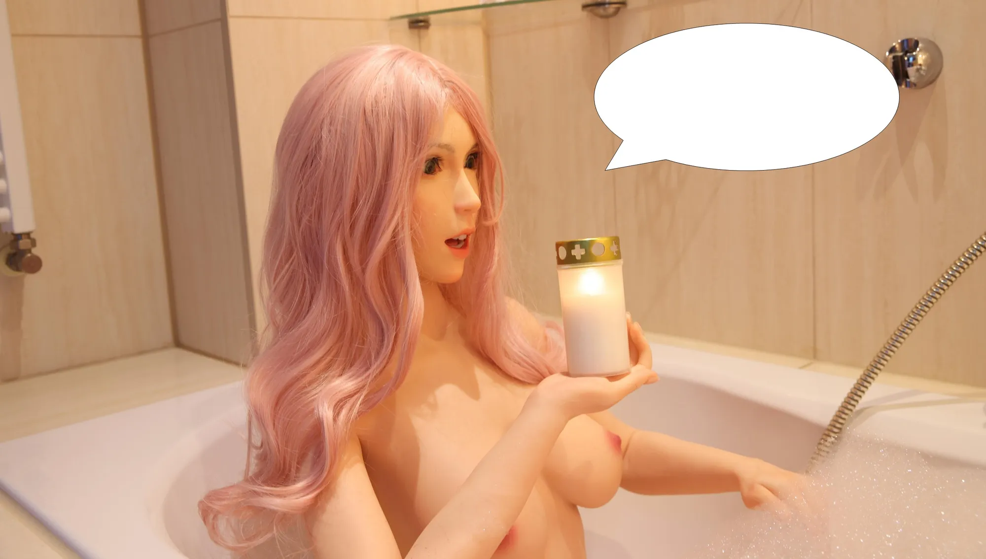 Aber es wäre doch durchaus denkbar, das sie im Rahmen eines Gastgeschenkes ein Wannenbad mit Schaum annehmen würden.